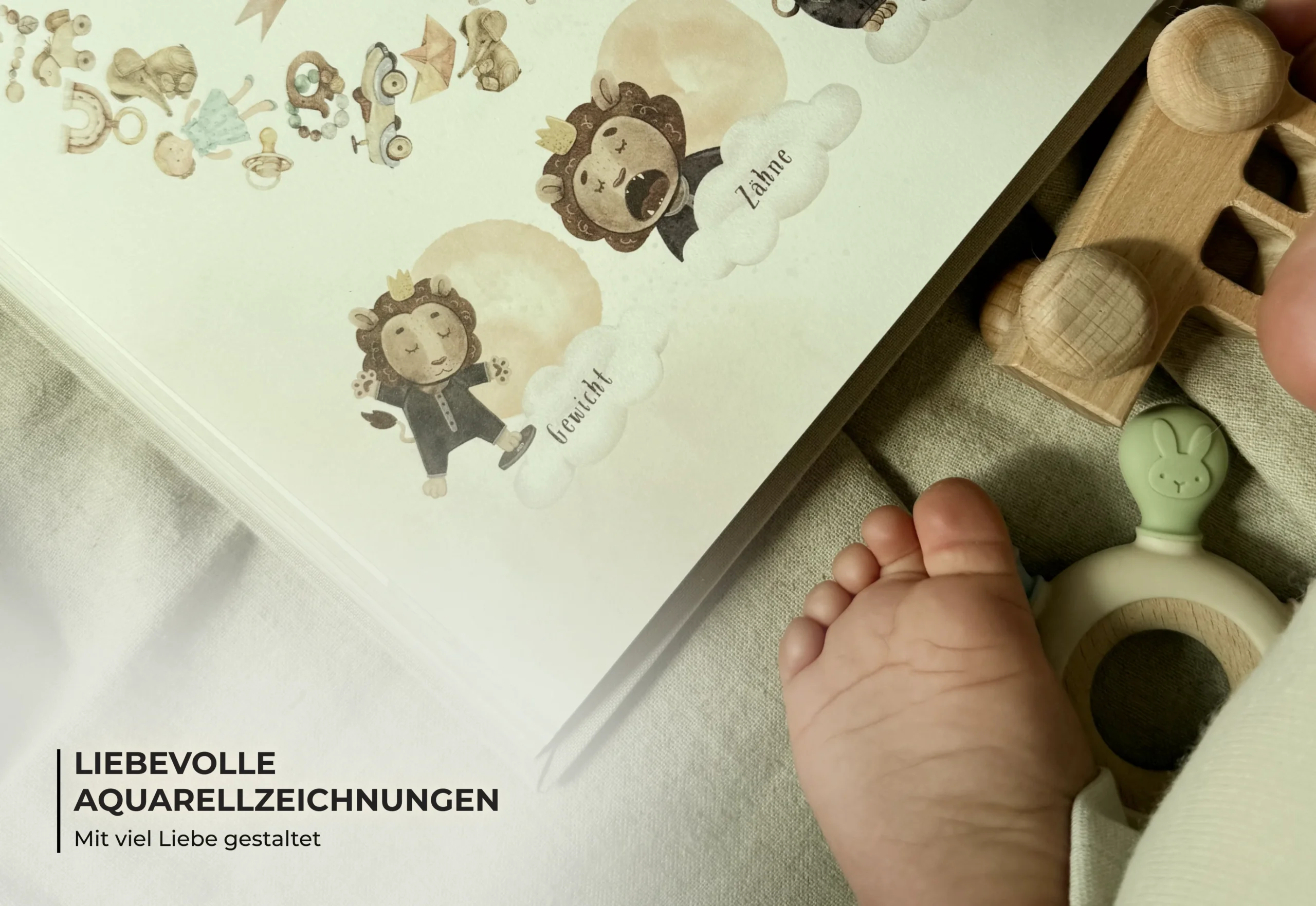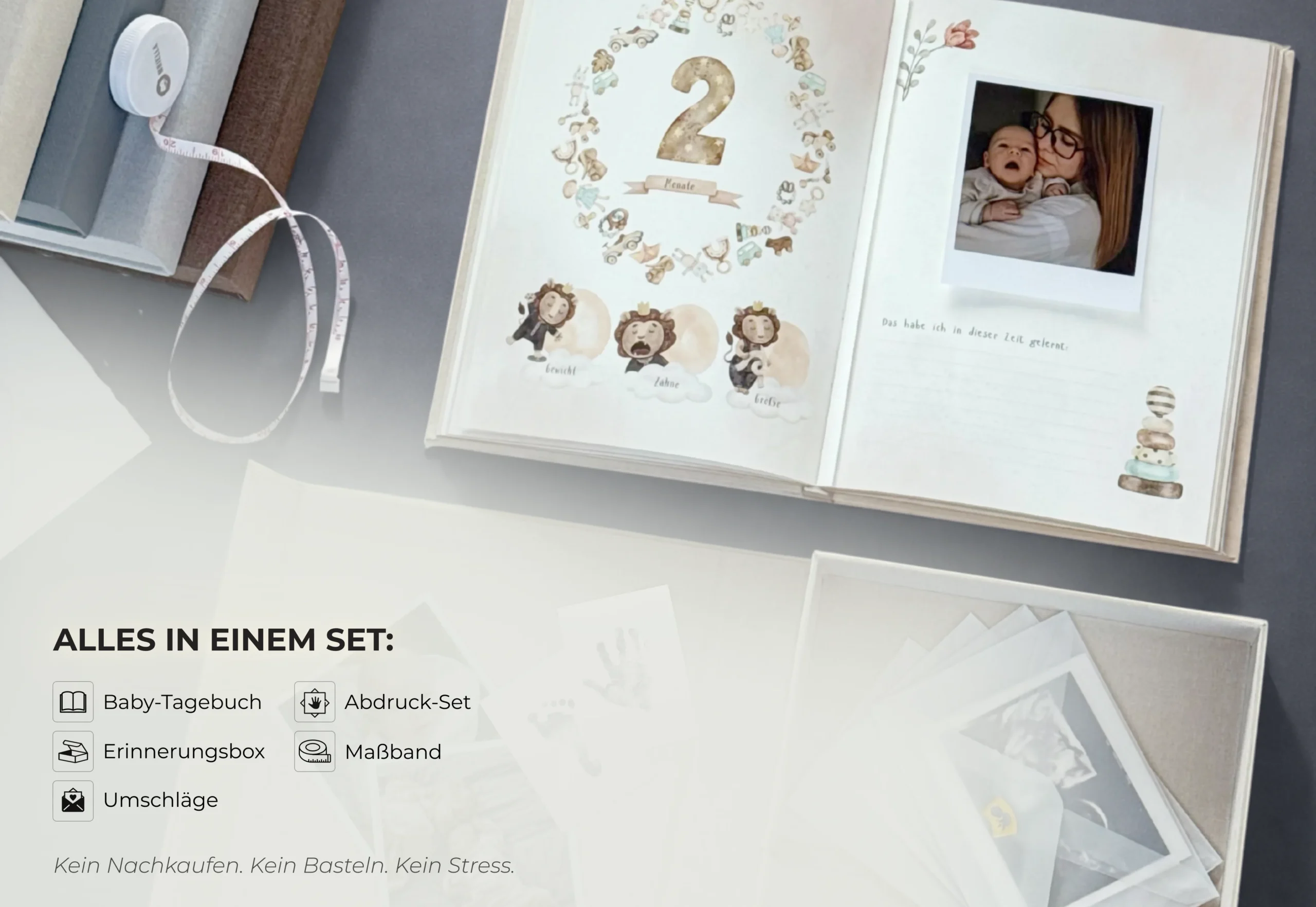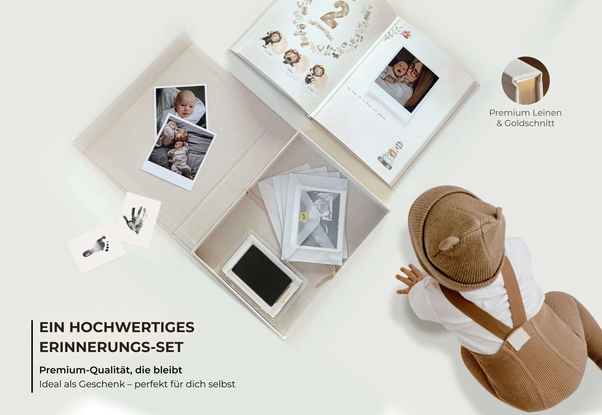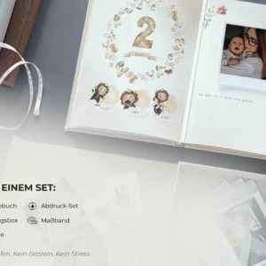 Babyalbum & Babytagebuch für das erste Lebensjahr mit Erinnerungsbox und Zubehör