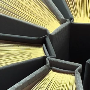 Spezielle Fadenheftung mit integrierten Spacern, damit das Album auch nach dem Einkleben von Fotos seine Form behält